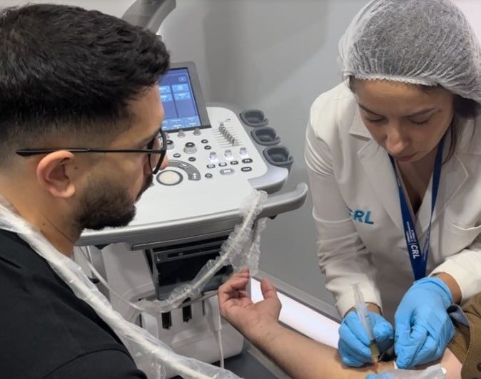 Dentro de las formaciones clínicas existe la especialización en técnicas como la Electrólisis Percutánea Terapéutica (EPTE®) y la Neuromodulación Percutánea (NMP©). En esta última, la guía ecográfica es clave para colocar la aguja de manera segura y precisa próxima al nervio periférico, permitiendo la estimulación eléctrica exacta para activar mecanismos de analgesia y mejorar la funcionalidad. Cabe señalar que la Clínica CRL es la representante oficial en Chile de estas técnicas.