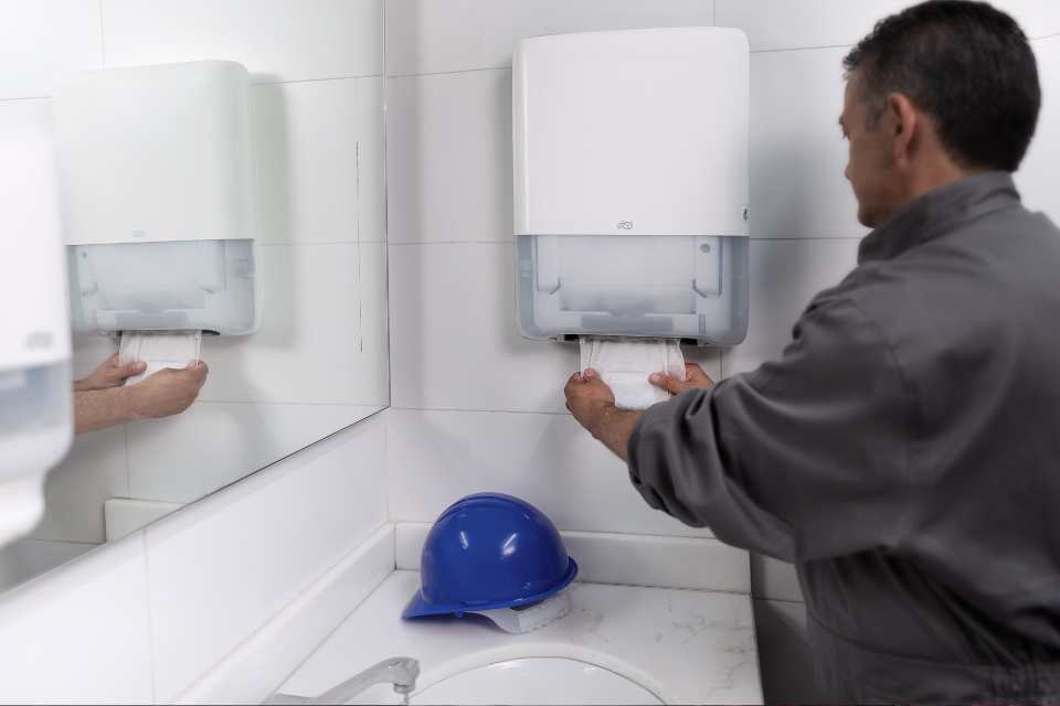 Tork, marca global de higiene profesional de Essity, ha desarrollado su portafolio bajo este principio. Sus sistemas de secado de manos, papel higiénico, jabones y servilletas operan con dispensado unitario, protegen el producto dentro del dispensador y están diseñados para reducir los puntos de contacto entre usuarios y minimizar el desperdicio. Según datos de la compañía, estos sistemas permiten reducir el consumo de insumos entre un 35 % y un 40 % frente a métodos convencionales, y disminuir los tiempos de recambio hasta en un 50 %.